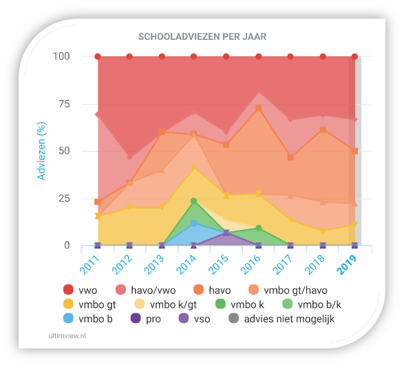 De afgelopen jaren hebben onze groep 8 leerlingen de volgende adviezen gekregen:
